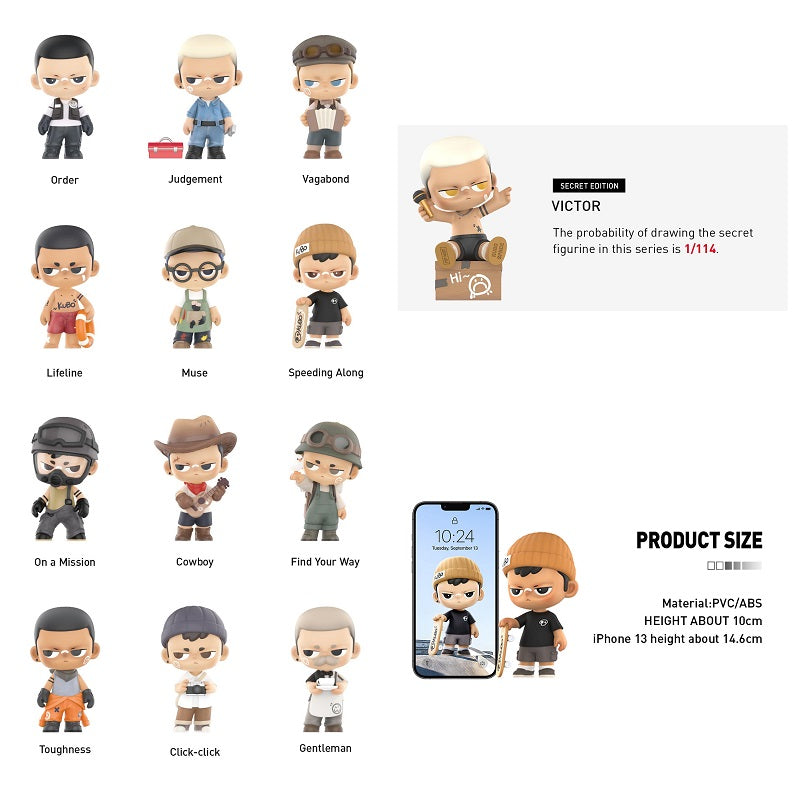 The set of 13 blind box figures, with a display case, includes a COA entry number card. The (Secret Victor) figure and entry card are signed by artist Bao Bao at an exclusive event on January 14, 2024, limited to 120 attendees.