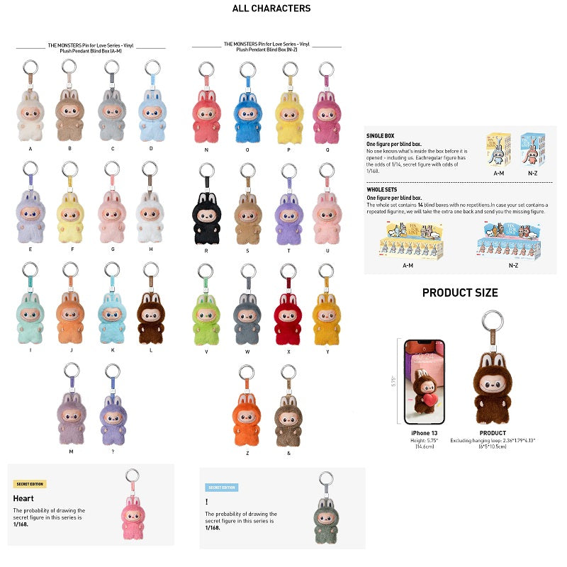 POPMART THE MONSTERS Pin for Love Plush Pendant 2025 Secret "Heart" - NEW